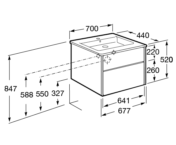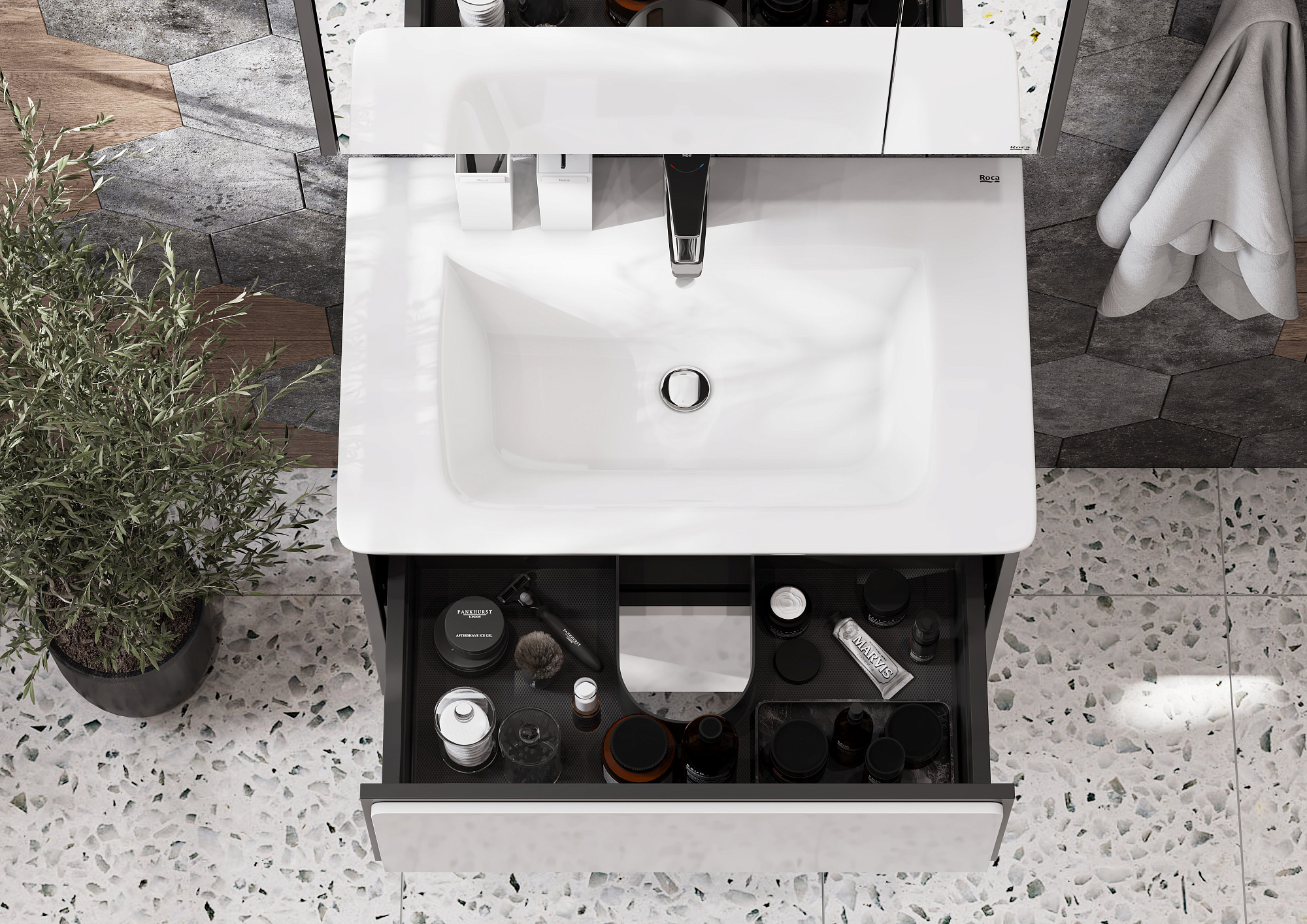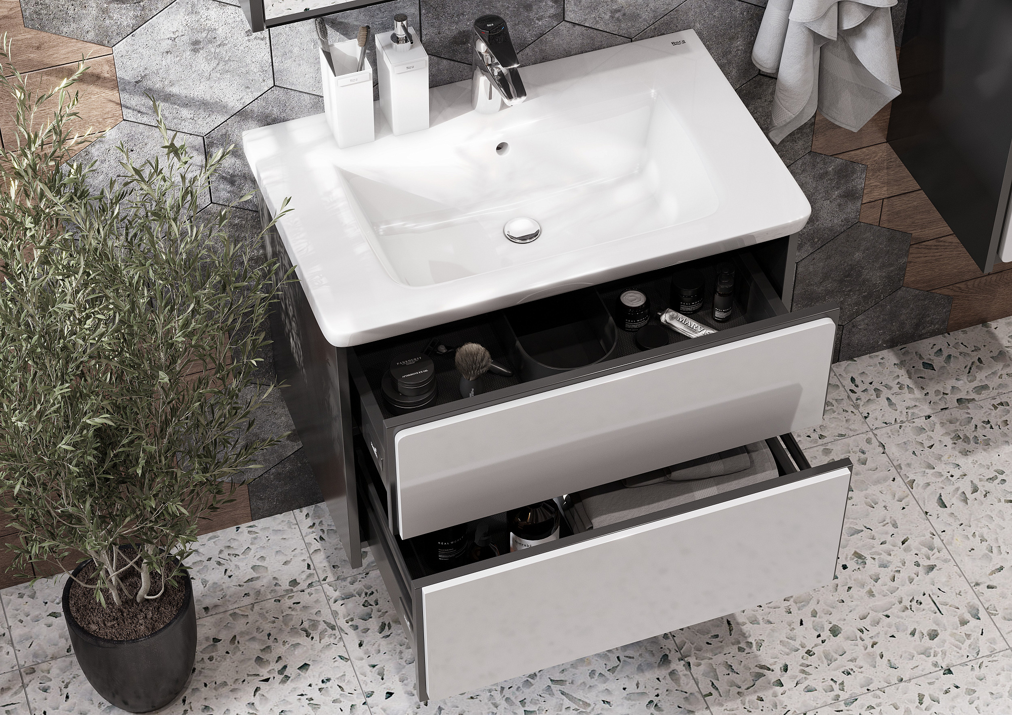 Тумба для раковины Ronda в современном стиле от испанского бренда Roca, выполненная из высококачественной МДФ, с ящиками полного выдвижения с системой push-to-open