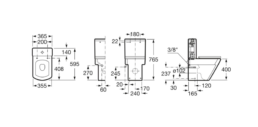 HALL бачок с механизмом двойного смыва 6/3 л, 365x365x140 мм, с нижним подводом воды, белый