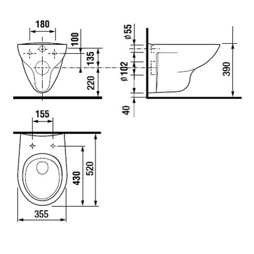 Унитаз поставляется без сиденья — его необходимо приобрести отдельно. Межосевое расстояние под крепежные шпильки составляет 180 мм .