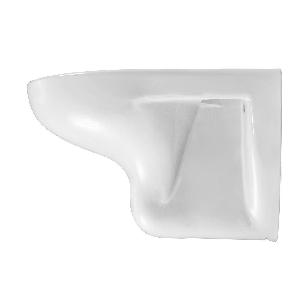 - Подвесная конструкция: Свободное пространство под чашей упрощает уборку и визуально облегчает помещение, делая санузел более просторным. Выпуск горизонтальный, подвод воды задний .