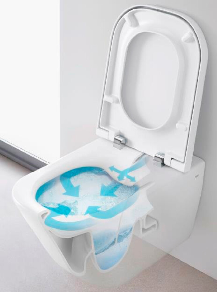 - Безободковая технология Clean Rim: Отсутствие традиционного ободка предотвращает скопление грязи и бактерий в труднодоступных местах — болезнетворным микроорганизмам просто негде скапливаться, а поверхность достаточно протереть влажной салфеткой .