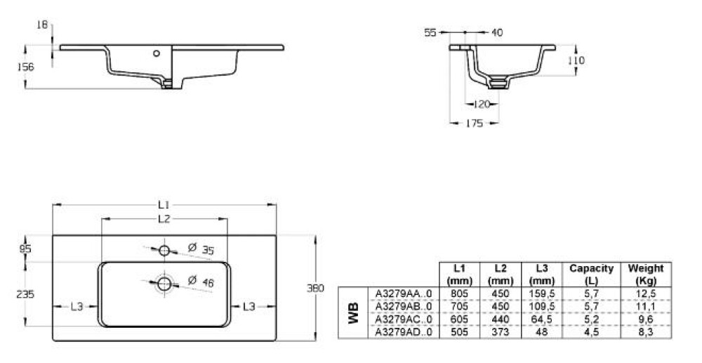 THE GAP UNIK раковина мебельная 600х380х156 мм, белый