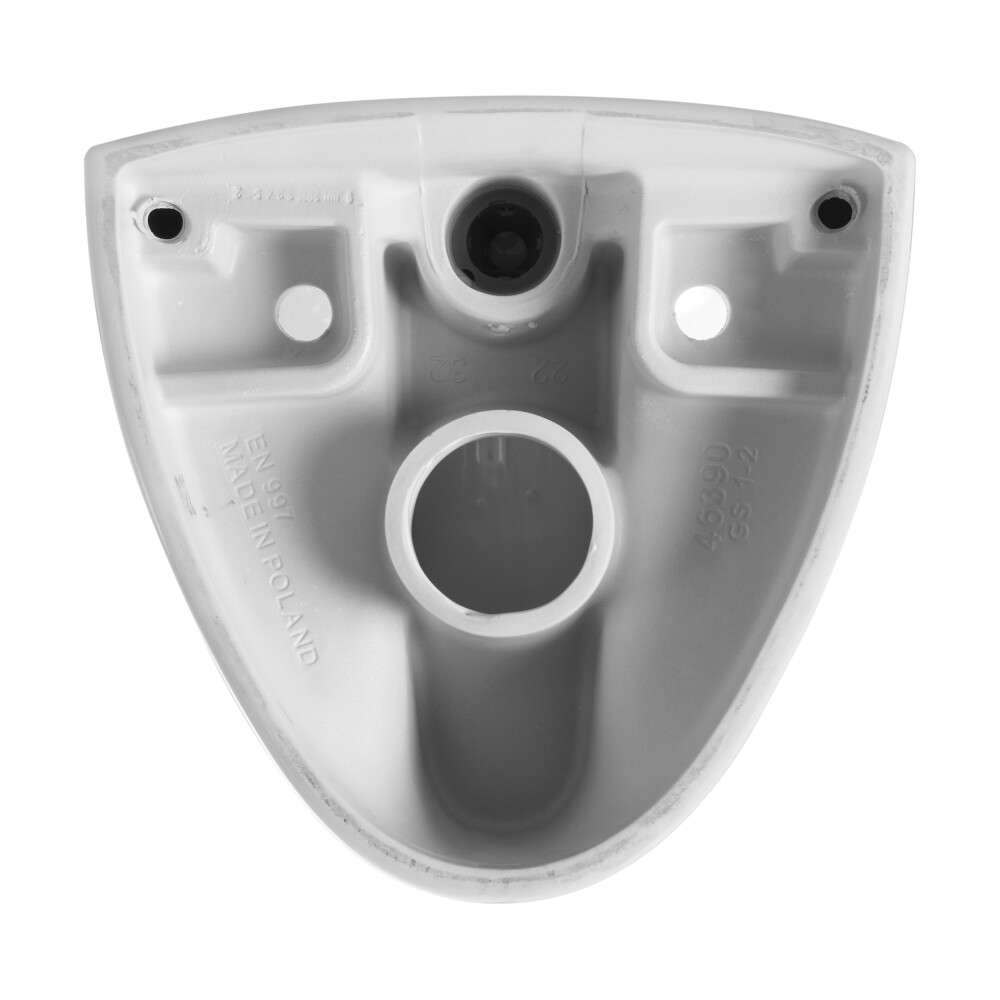 Унитаз поставляется с сиденьем из дюропласта с механизмом микролифт и крепежными элементами. Межосевое расстояние под крепежные шпильки составляет 16–18 см . Гарантия производителя — 10 лет .