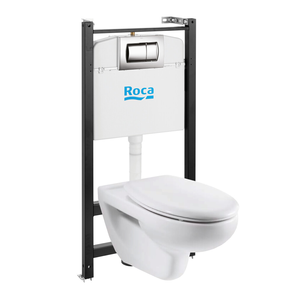 Инсталляционная система Roca Active. Victoria подвесной унитаз. сиденье с функцией мягкого закрывания. панель смыва 7.8901.1.60B.1 Упаковка 1 (чаша. сиденье. панель смыва): 573*398*433. вес брутто 25кг; Упаковка 2 (инсталляция): 1150*160*575. вес брутто 14.2кг.