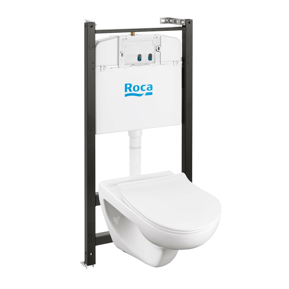 Инсталляционная система Roca Active. Victoria подвесной унитаз Rimless. сиденье с функцией мягкого закрывания