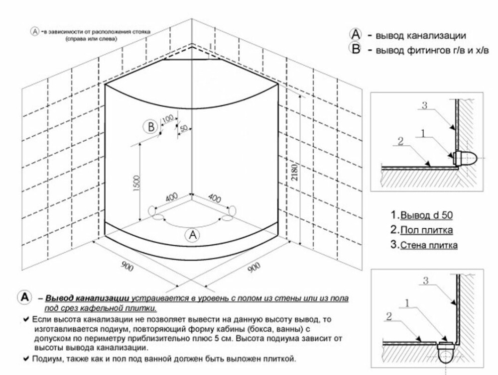 Высота поддона: 150 mm