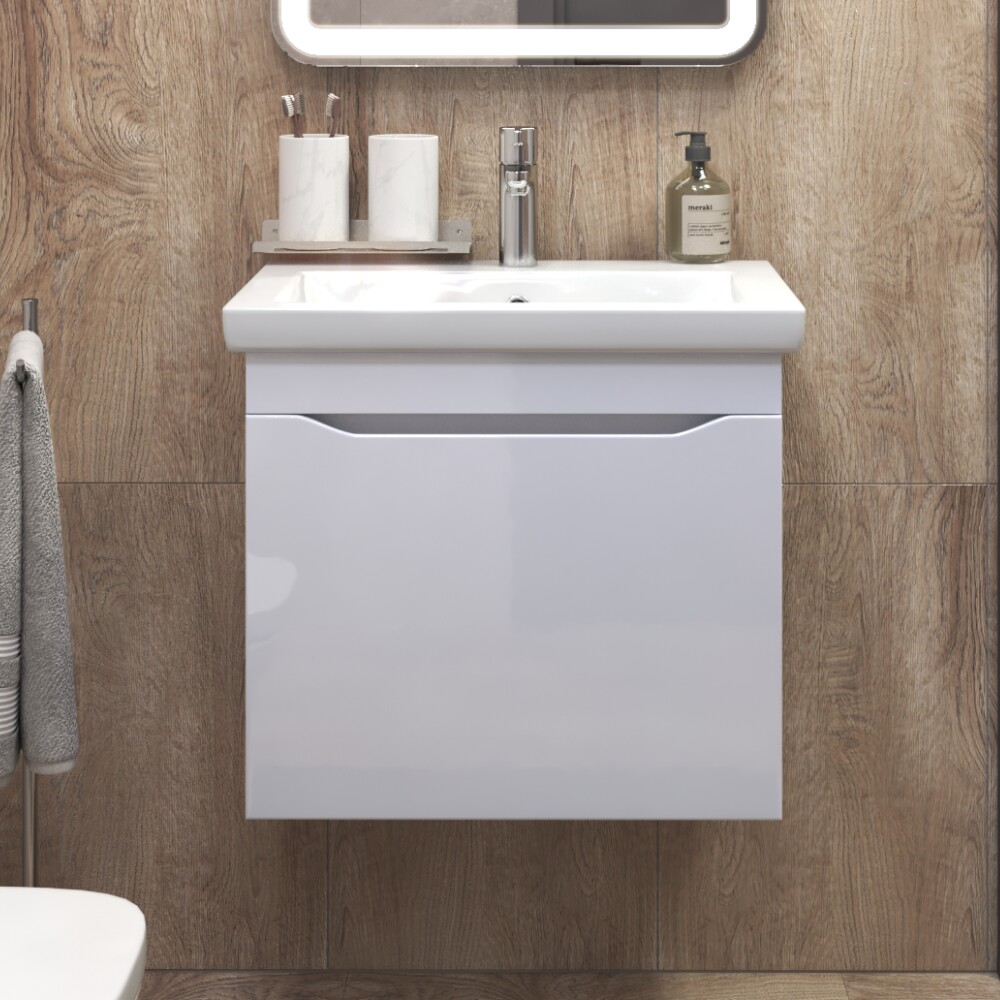 Тумба под раковину Vigo GRANI 600-0-1 подвесная без раковины. Оснащение: 1 ящик, выдвижной органайзер для мелочей, шариковые направляющие полного выдвижения, 2 навеса, 1 сифон