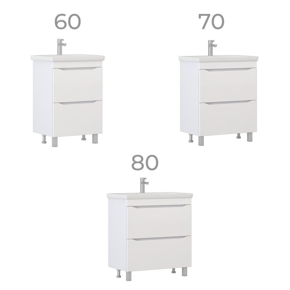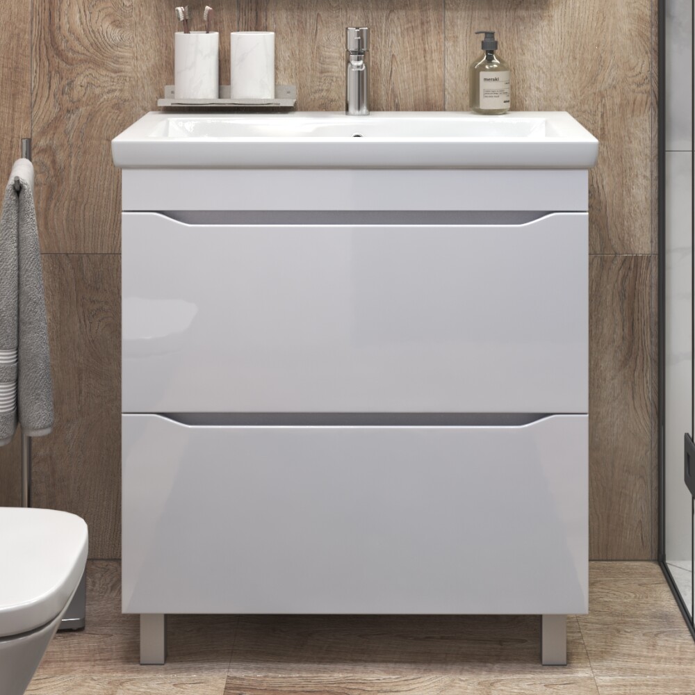 Тумба под раковину VIGO GRANI 800-0-2 без раковины. Оснащение: 2 ящика, выдвижной органайзер для мелочей, шариковые направляющие полного выдвижения, 2 опоры квадратные регулируемые; 2 кухонные опоры, 1 сифон
