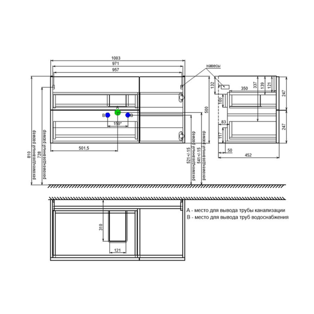 В комплекте крепеж для монтажа тумбы.