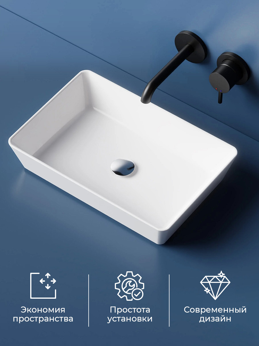 Умывальник NORDEN не оставит равнодушными любителей современного дизайна. Для модели характерна четкая геометрия на основе прямых линий и безопасных углов. Накладной прямоугольный умывальник NORDEN порадует вас изящным силуэтом и дизайном, который станет акцентом как в классическом интерьере, так и в обстановке в стиле модерн. Изделие из прочного сантехнического фарфора покрывается грязеотталкивающей глазурью, которая упрощает чистку и сохраняет эстетичный внешний вид на долгие годы. Накладной умывальник обладает удобной формой для проведения гигиенических процедур, а оптимальная глубина исключит разбрызгивание