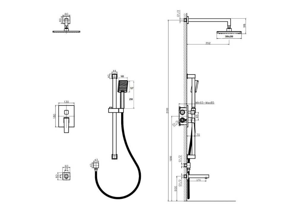душевая система со смесителем. душевая штанга. душевая лейка. тропический душ. держатель душевой лейки. душевой шланг. фум-лента. паспорт. гарантийный талон. индивидуальный пакет