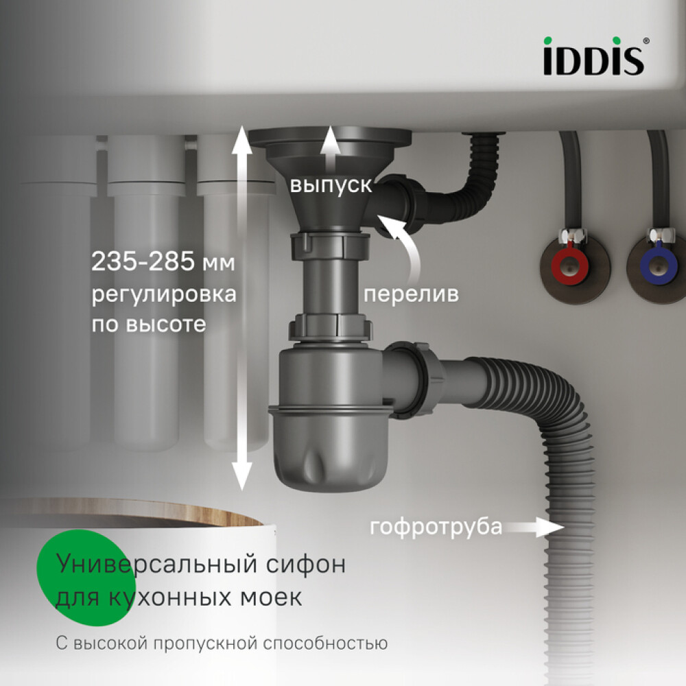 • Сифон уже собран, что исключает риск повреждений и ошибок при монтаже.