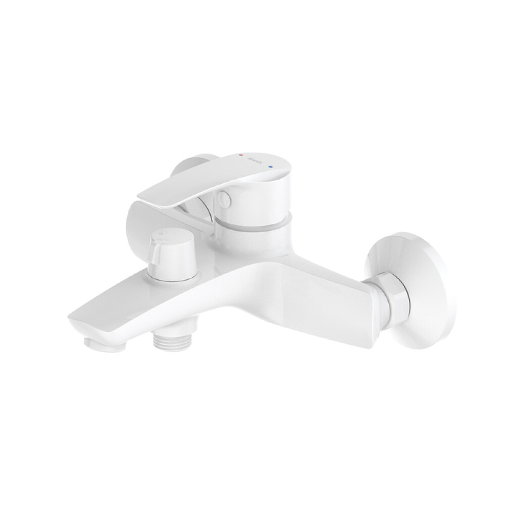 Смеситель для ванны Ray имеет универсальный дизайн и благодаря трендовому матовому белому цвету станет ярким акцентом современного интерьера ванной.