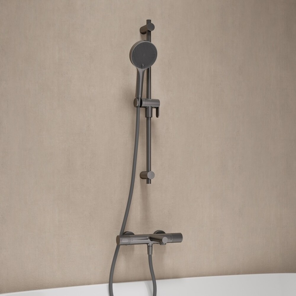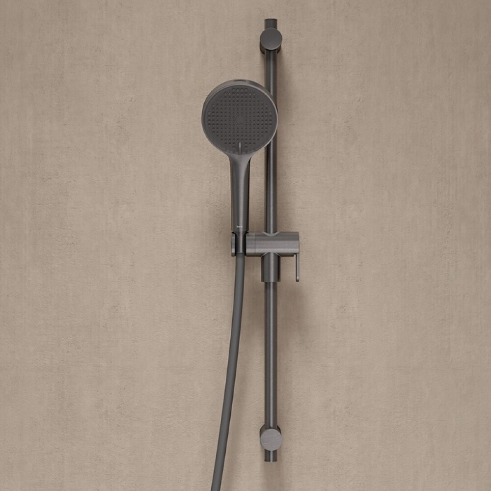 Ручная лейка для душа Aiger (диаметр 120 мм) в трендовом графитовом цвете выглядит красиво, стильно и современно благодаря однотонной темно-серой лицевой части и силиконовым форсункам в тон. Лейка будет гармонично сочетаться с любым одноцветным смесителем и душевым шлангом благодаря универсальному соединению G ½.