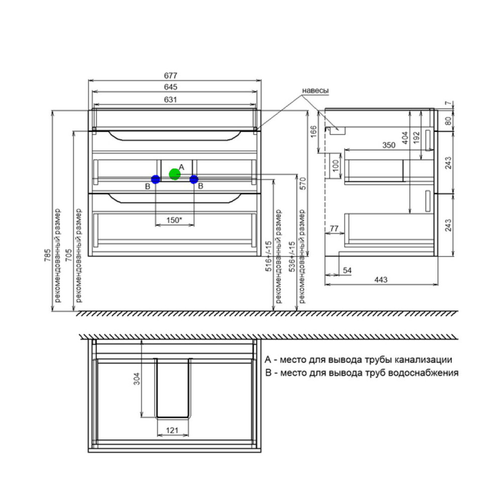 Пластиковая защита сифона внутри ящиков увеличивает долговечность и влагостойкость тумбы.