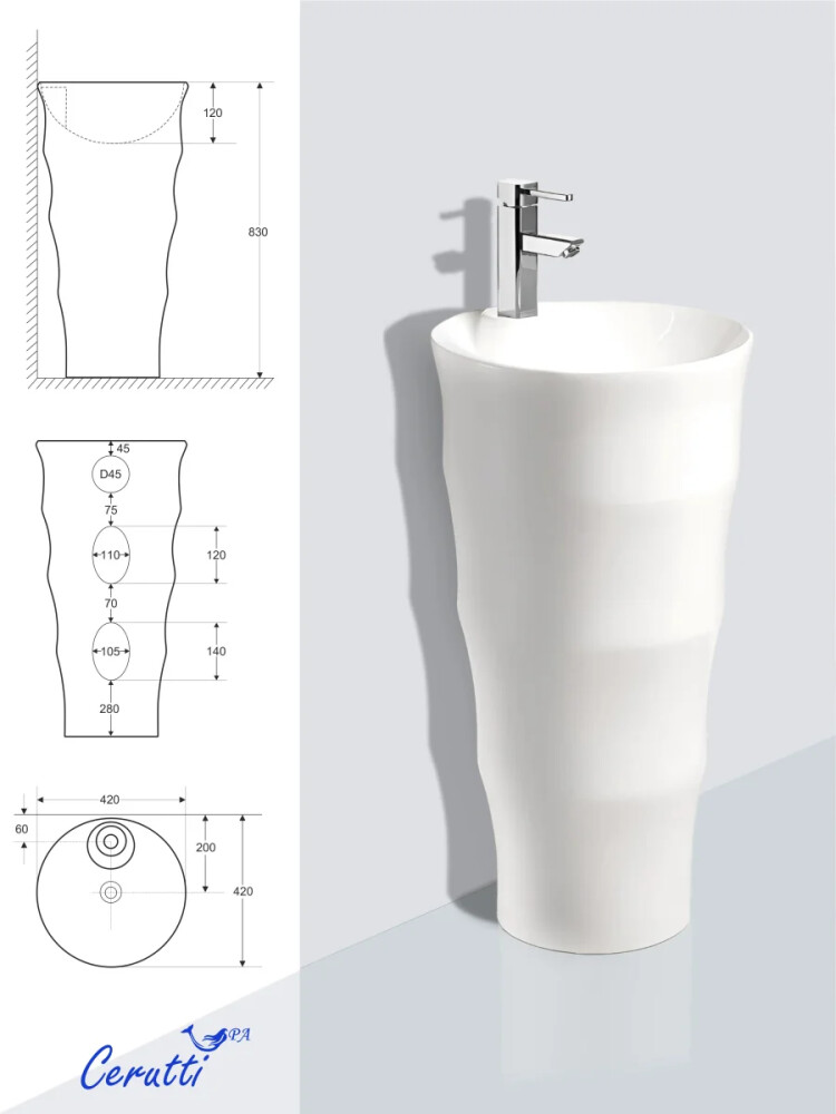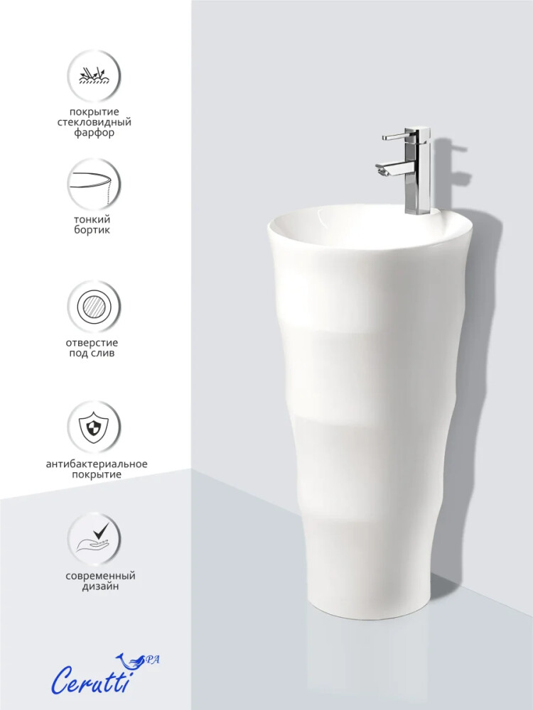Раковина напольная Ceruttispa MARCO белая, литая с пьедесталом 42х42х83 см (7833)