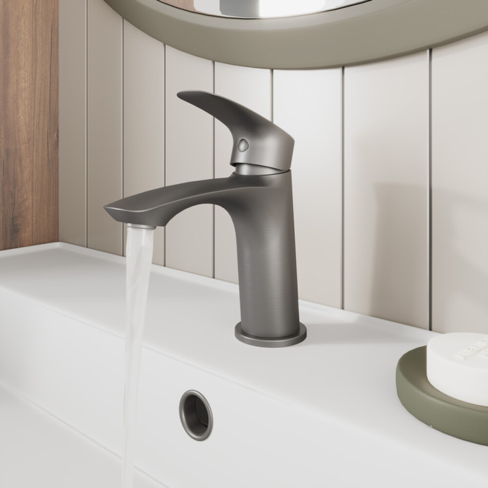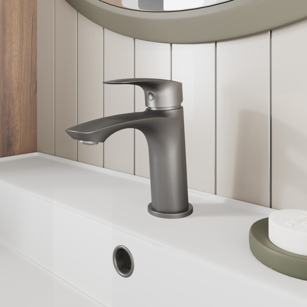 Смеситель для умывальника Rora отличается универсальным характером: основной акцент в его дизайне приходится на плавные линии корпуса и трендовый цвет. Модель в графитовом цвете одинаково выигрышно смотрится на контрастных белоснежных раковинах и дополняет собой керамику темных оттенков. Благодаря увеличенному выносу излива вода из смесителя поступает в раковину в самой удобной точке, что обеспечивает максимальную свободу движения в зоне умывания. В комплекте гибкая подводка и крепеж.