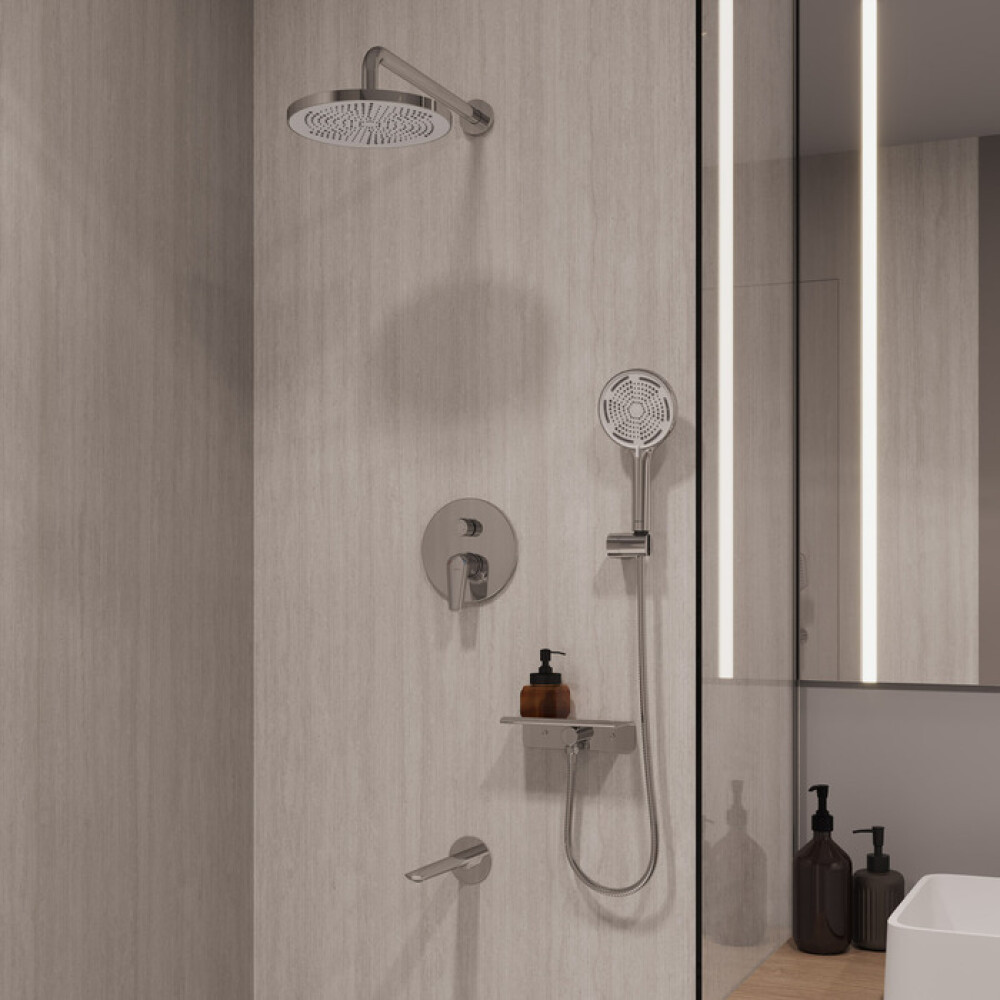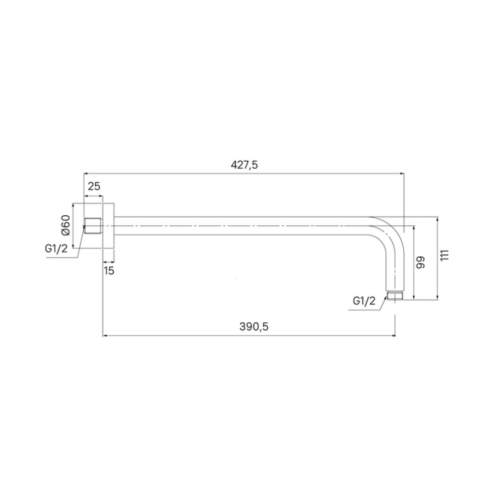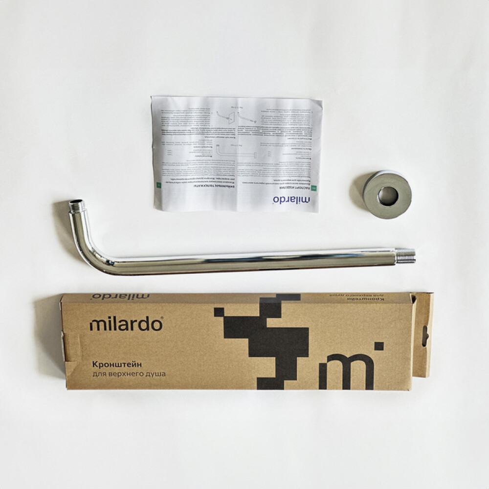 Г-образный настенный кронштейн Dale для верхней душевой лейки. Модель совместима с любыми хромированными верхними лейками Milardo®, а также с лейками других производителей с подключением G 1/2. Кронштейн подходит для душевой зоны практически любого размера и позволяет оценить все преимущества тропического душа.