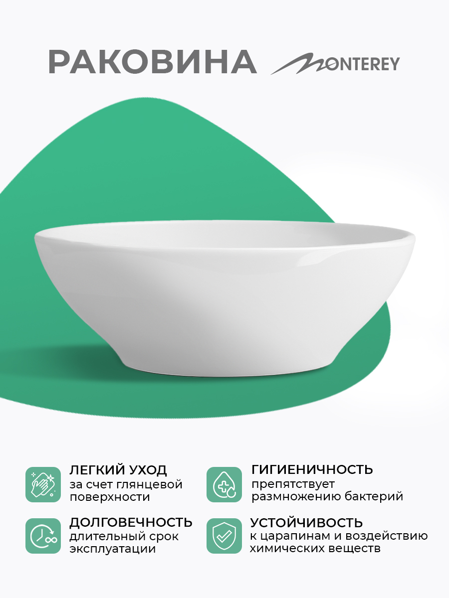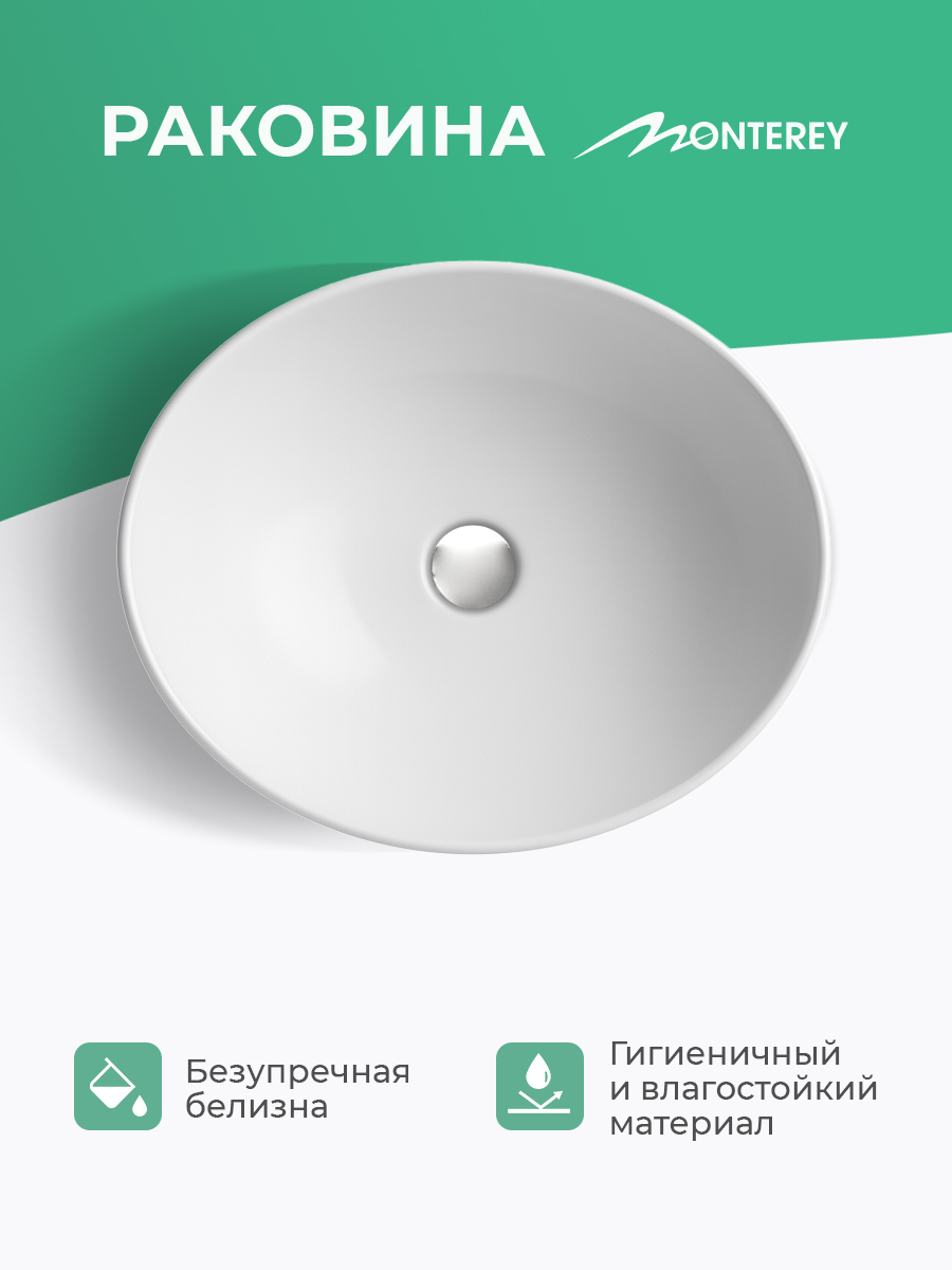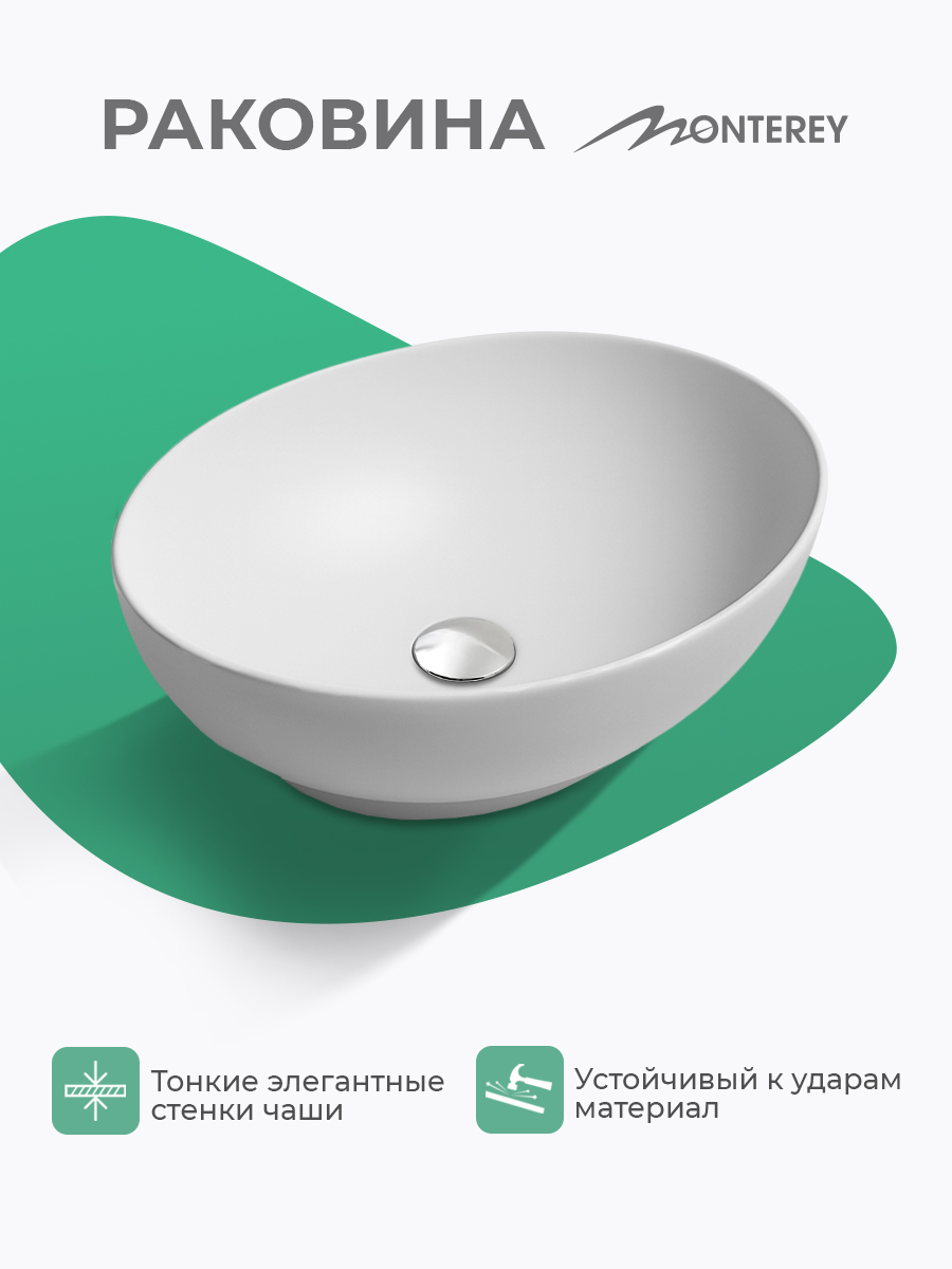 Овальная накладная раковина MONTEREY ZT-8043 шириной 41 см — идеальное решение для небольших ванных комнат, санузлов в квартирах, офисах и студиях. Благодаря компактным размерам и стильной форме она впишется даже в ограниченное пространство, сохраняя удобство и эстетику.