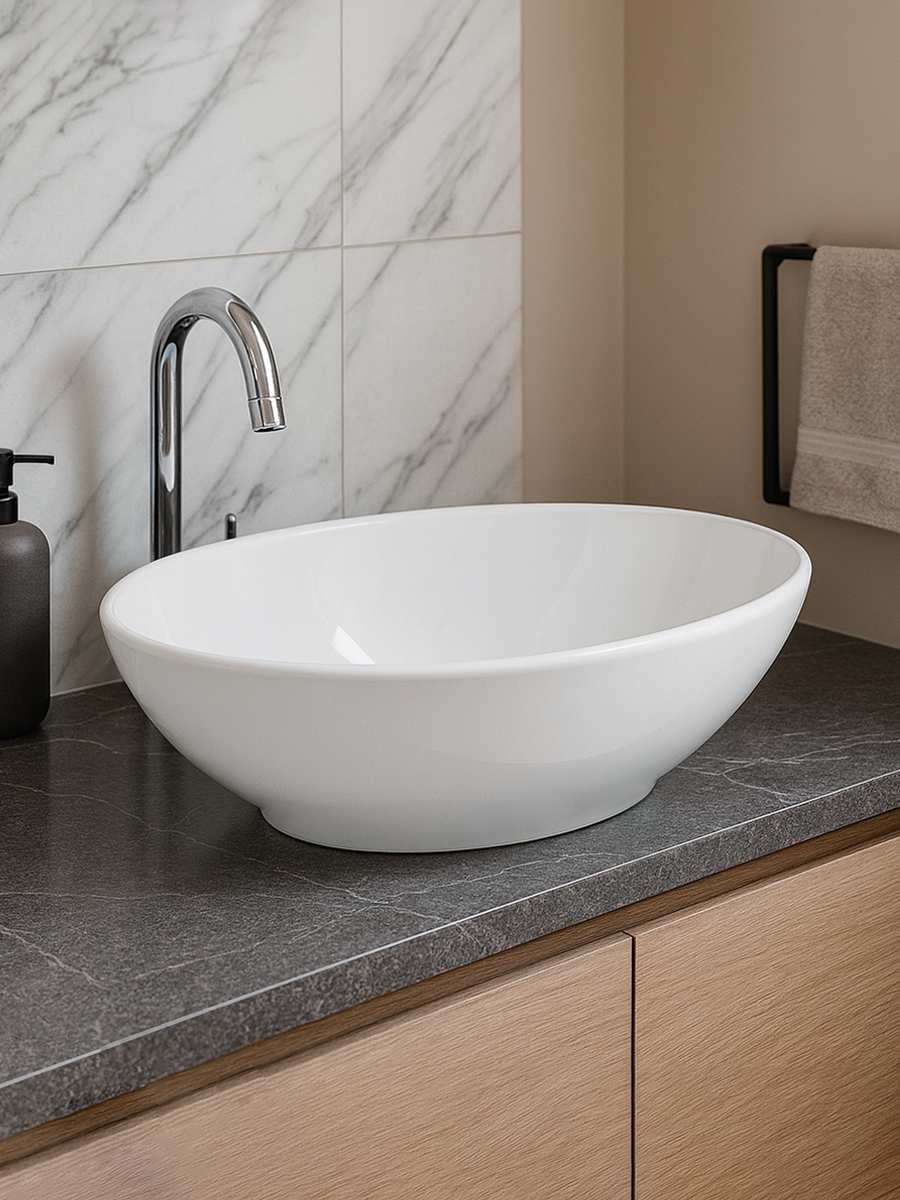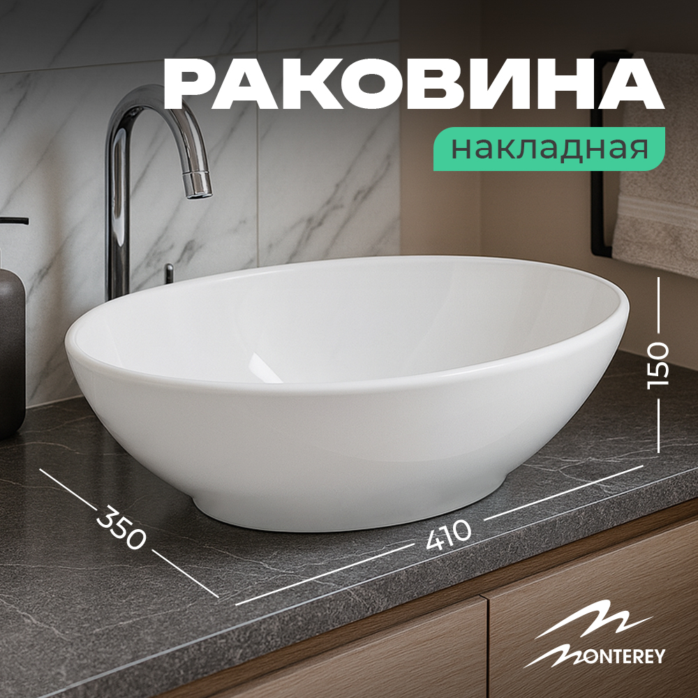 Накладная раковина 41 см MONTEREY ZT-8043 — компактная овальная модель для современных ванных комнат