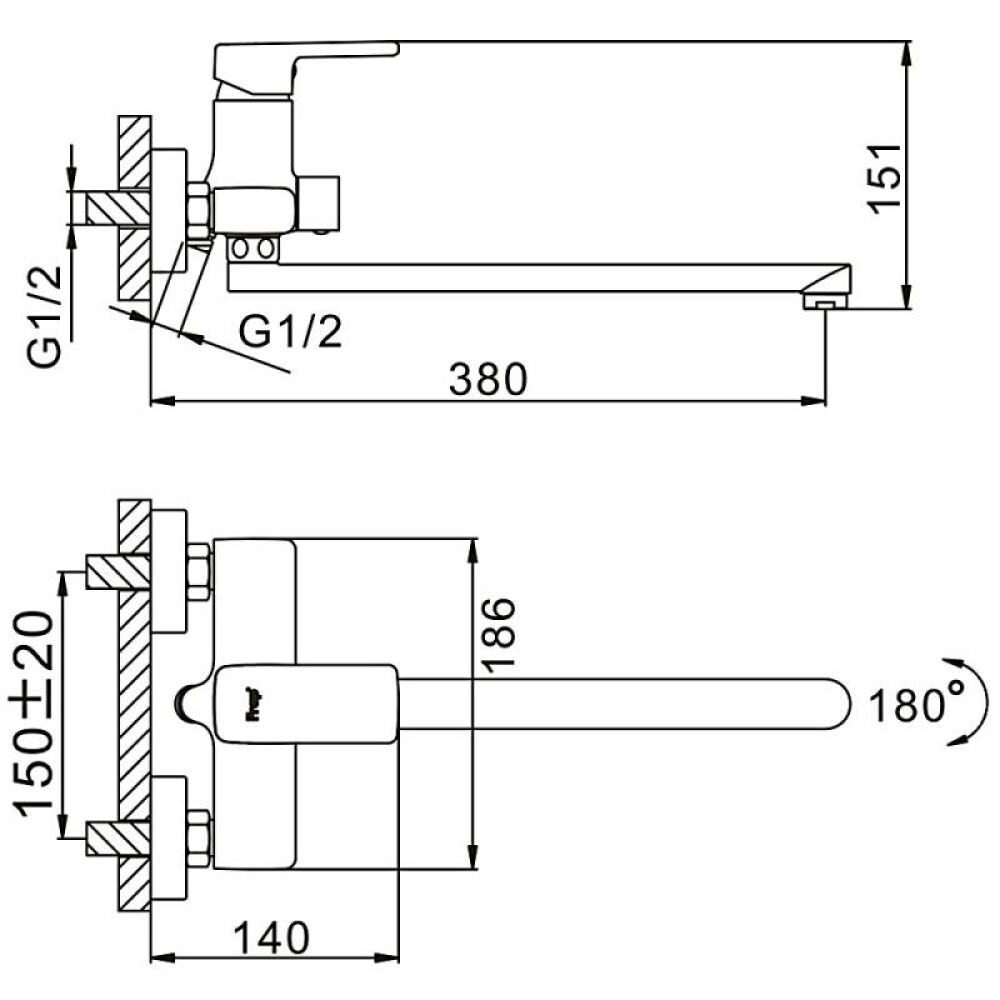 Монтаж: настенный, на два отверстия