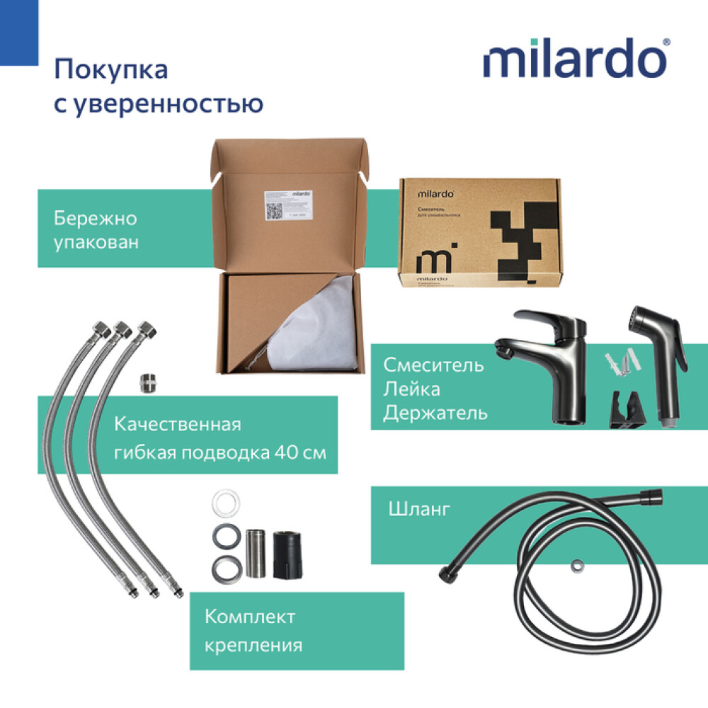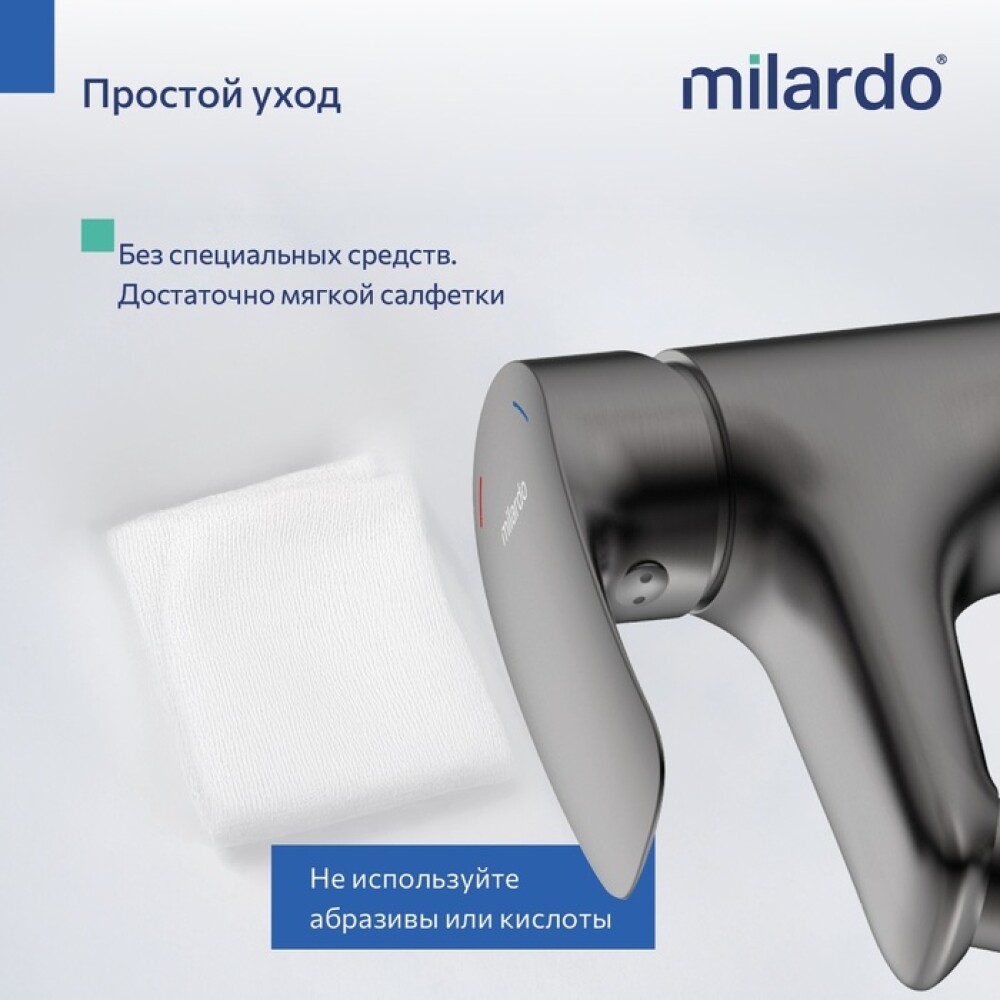 • Гарантия на смесители Milardo® – 7 лет, на картридж – 3 года, на душевые аксессуары – 1 год