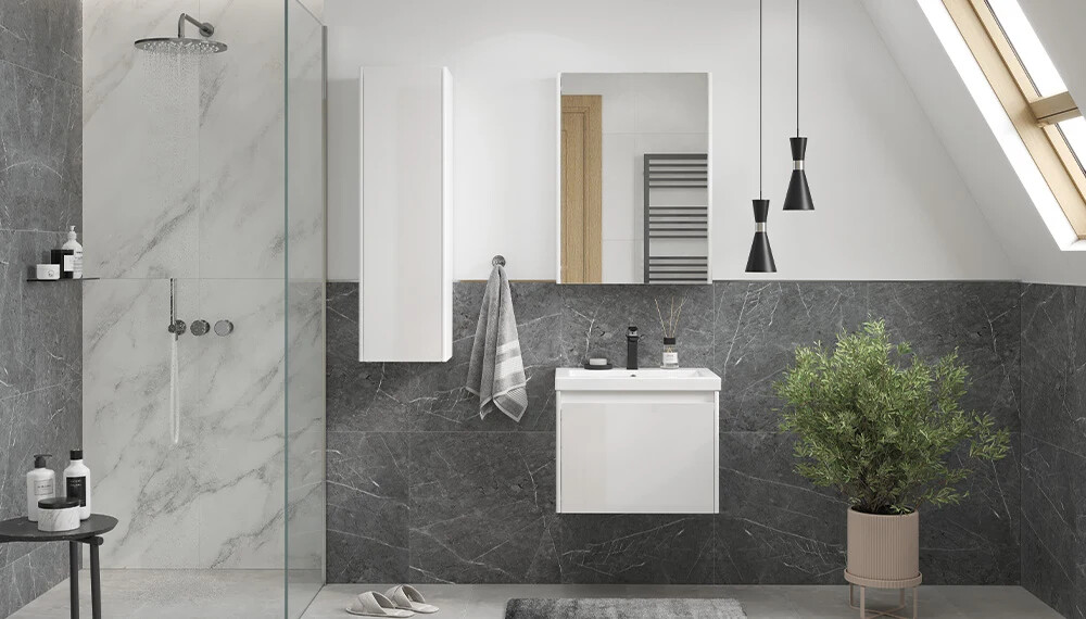-Универсальный размер: Оптимальная ширина 60 см подходит для большинства стандартных ванных тумб.