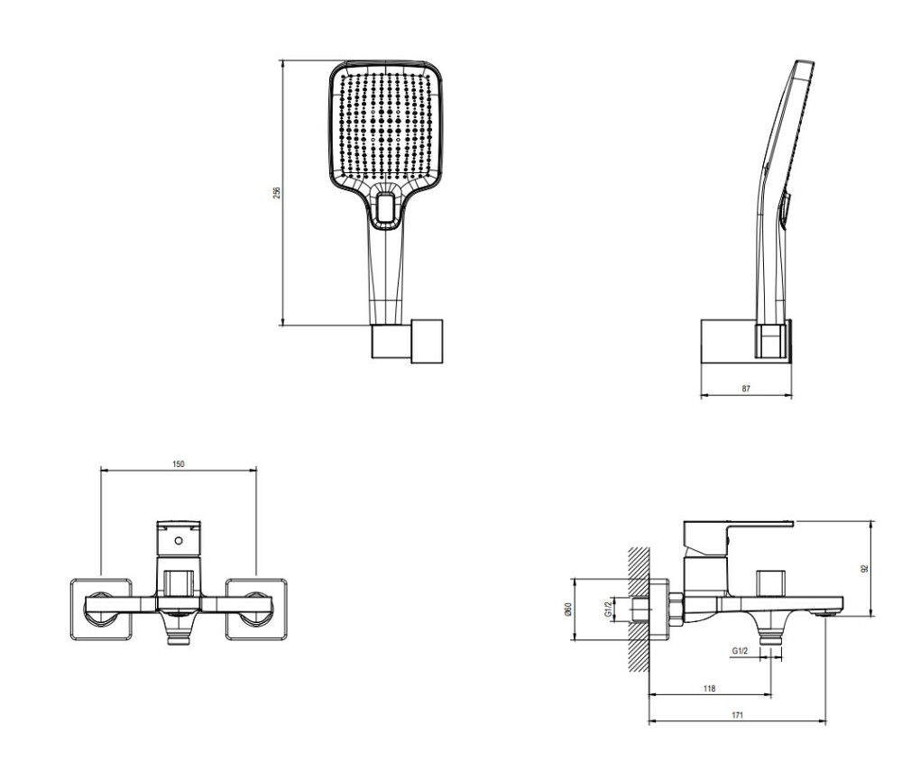 - Душевая трехрежимная лейка и шланг длиной 150 см уже в комплекте