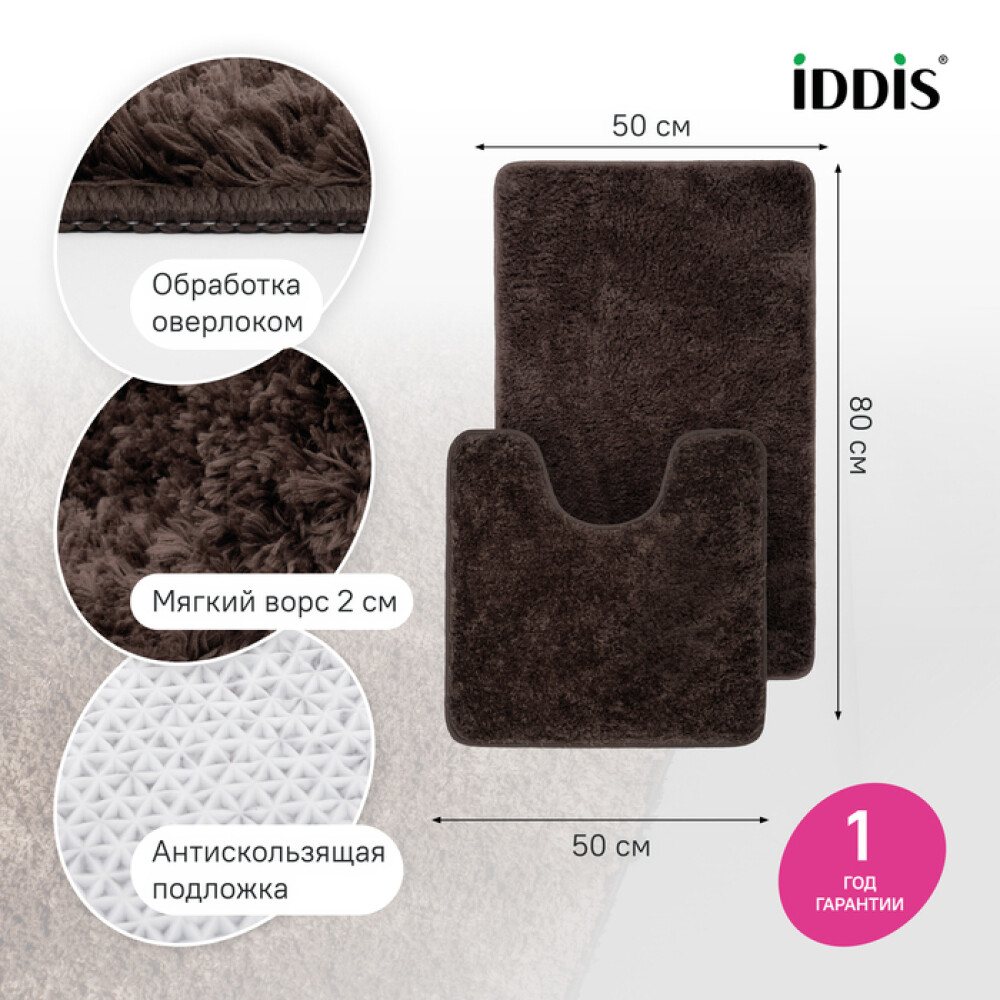 Набор из двух мягких ковриков для ванной темно-коричневого цвета с плотным высоким ворсом (2 см), очень приятных на ощупь. Стриженый ворс из микрофибры отлично держит форму, легко чистится и быстро сохнет. Коврики предназначены для ванной и для туалета (маленький коврик имеет вырез под унитаз).