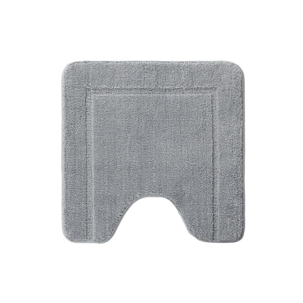 Мягкий коврик для ванной стильного серого цвета с плотным невысоким ворсом (1 см), очень приятный на ощупь. Ворс из микрофибры отлично держит форму, легко чистится и быстро сохнет. Коврик имеет вырез под унитаз и предназначен для туалета.