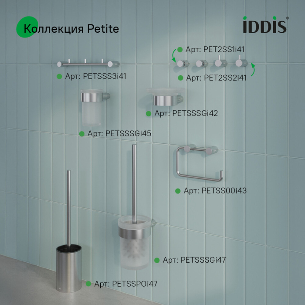 Petite – базовая коллекция функциональных аксессуаров для ванной с минималистичным, спокойным дизайном и округлыми формами, что делает её универсальным украшением любого современного санузла. Аксессуары в универсальном матовом хроме преобразят интерьер, сделают его завершённым и гармоничным. Идеально дополнят смесители IDDIS® из коллекций Aiger по цвету и форме.