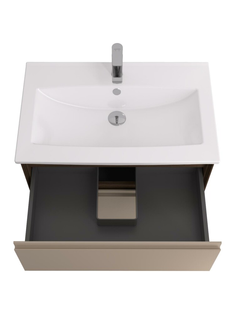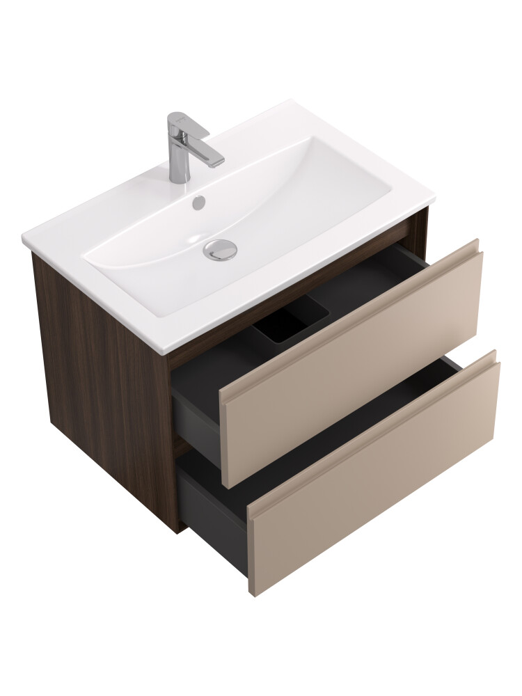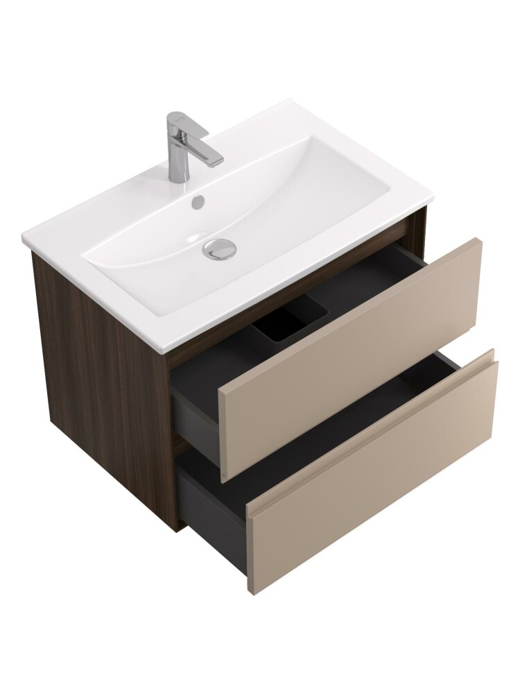 Тумба подвесная для раковины AQUATON Люмин 75 | 2 ящика, орех франклин/капучино