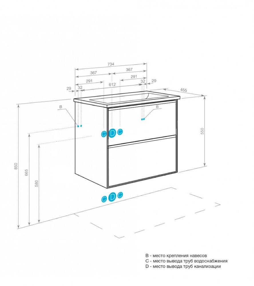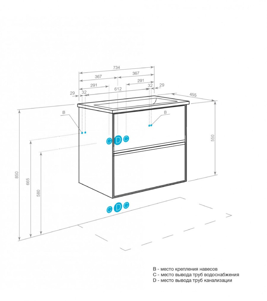 Комплектация: тумба, 2 ящика, регулируемые навесы