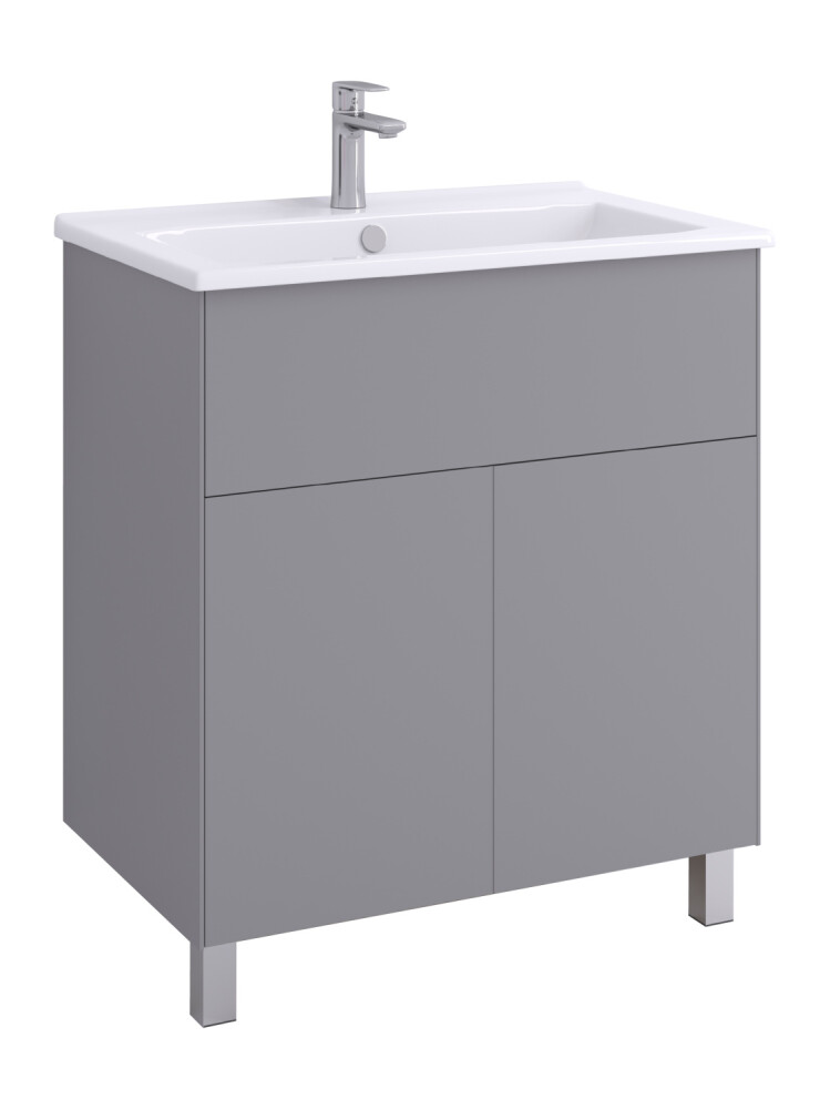 Тумба под раковину AQUATON Форест Про 75 туманный серый — сдержанное и эргономичное решение, вдохновленное природными мотивами и выполненное в современном оттенке «туманный серый». Коллекция ФОРЕСТ отличается минималистичным дизайном, который органично впишется в большинство современных интерьеров. Тумба предлагает максимально удобную организацию пространства: функциональный ящик с системой хранения (включая две регулируемые планки) и вместительное отделение за фасадами-створками. Ящик и створки открываются одним нажатием благодаря интегрированной системе Push to open. За створками расположены две полки, одна из которых регулируется по высоте и утоплена внутрь для комфортного хранения высоких предметов. Тумба изготовлена из влагостойкой ЛДСП (ВЛДСП) и может быть установлена как на регулируемые опоры (входят в комплект), так и в подвесном варианте с помощью регулируемых навесов. Габаритные размеры: ширина 730 мм (под раковину 75 см), глубина 455 мм, высота 733 мм. Комплектация включает тумбу, два регулируемых навеса, две регулируемые ножки, одну регулируемую полку, один ящик с направляющими Push to open, два фасада-створки и две планки разделения пространства ящика. Гарантия на изделие составляет 30 месяцев