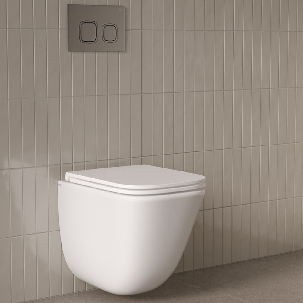Подвесной унитаз Torr Q актуальной плавной квадратной формы с системой полного смыва «торнадо» и скрытым гидрозатвором – стильное технологичное решение для ванной.