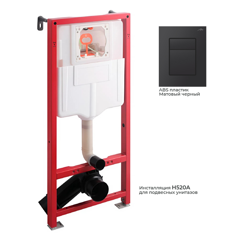 Инсталляция для подвесных унитазов Monterey H520A — полный комплект с клавишей черный матовый