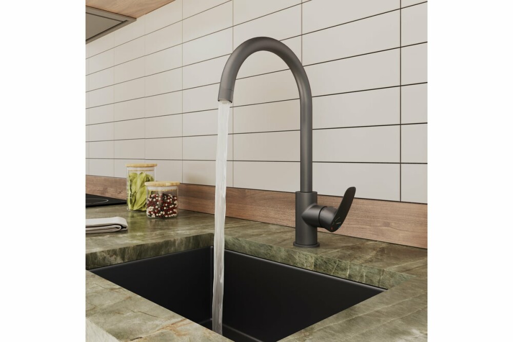 Смеситель для кухни Рора (Rora) с отдельным каналом для фильтрованной воды отличается универсальным характером: основной акцент в его дизайне приходится на плавные линии корпуса и трендовый графитовый цвет. К нему можно подключить фильтр любого производителя и наслаждаться чистой водой прямо из смесителя. Переключение между режимами подачи воды осуществляется только одной ручкой. Модель не требует дополнительного отверстия в мойке под фильтр. Гибкая подводка и крепеж в комплекте.