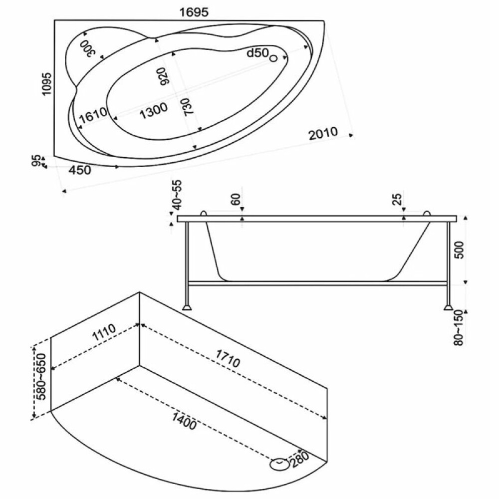 • Форма ванны