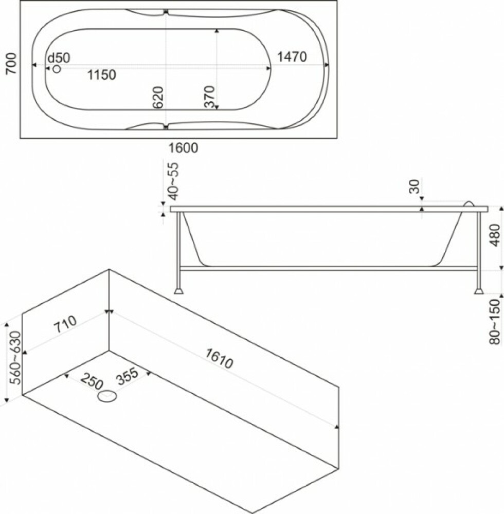 Акриловая ванна BAS Мальдива 160х70 Стандарт — оптимальное решение для современной ванной комнаты. Прямоугольная акриловая ванна длиной 160 см и шириной 70 см изготовлена из усиленного акрила толщиной 5 мм. Глубина 43 см и объем 190 л обеспечивают комфортное принятие ванны. В комплекте упрощенный каркас с ножками для быстрого монтажа. Произведено в России в среднем ценовом сегменте. Универсальная ориентация и лаконичный дизайн делают модель идеальным выбором для помещений стандартного размера. Фронтальная панель приобретается отдельно.