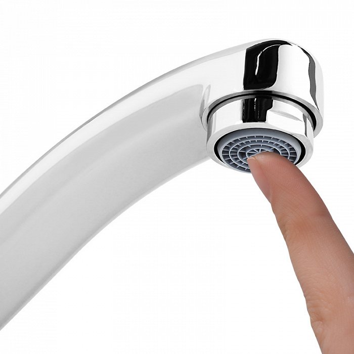 • Съемный силиконовый аэратор Neoperl® гарантирует ровный и мягкий поток воды без брызг. Легко чистится от известкового налета простым движением пальца.