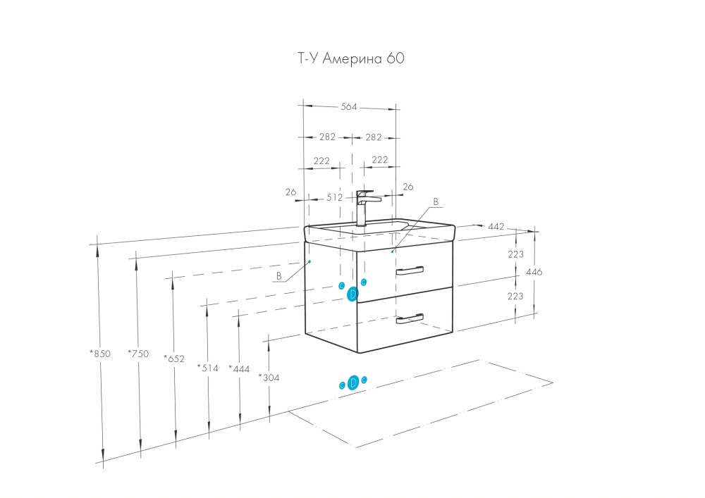 Размеры тумбы без раковины (Ш*В*Г), см: 56 x 46 x 43.9