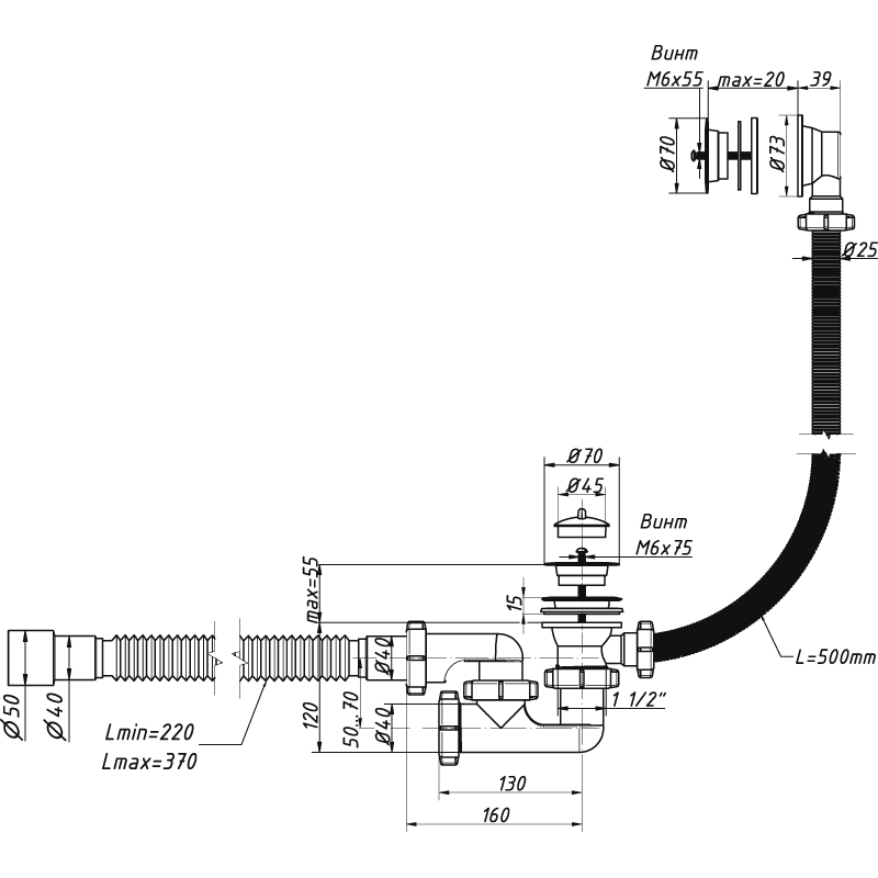 Сифон для ванны McALPINE кнопка с раздвижным переливом MRB11 1 1/2