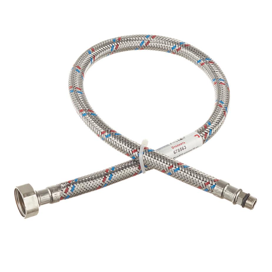 Подводка тонкий штуцер М-10 Х 1/2 " 60 см MATEU короткий 721060085. Предназначена для монтажа сантехнической арматуры и приборов сантехнического назначения, подводки воды к приборам бытового назначения. Не предназначена для применения в постоянном проточном режиме, вместо трубопроводов. Состав Резиновый шланг (EPDM) в оплетке из нержавеющей стали AISI 304, гайки, ниппель и штуцер – латунь. Комплектация Подводка, резиновые прокладки. Расшифровка маркировки 60 см – длина подводки, 1/2″ – диаметр условного прохода (16 мм). M10 – метрическая наружная резьба 10 мм